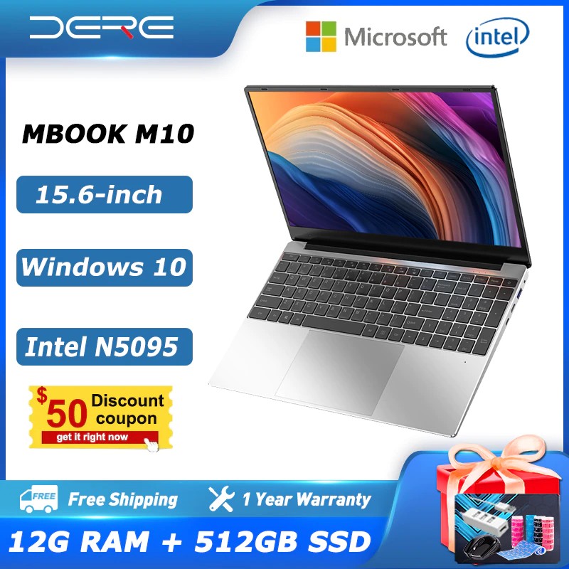Ноутбук Dere MBook M10, 15, 6 дюйма Intel Celeron N5095 12 Гб ОЗУ 512 Гб SSD двухдиапазонный Wi-Fi игровой портативный ноутбук Windows 10, ноутбук