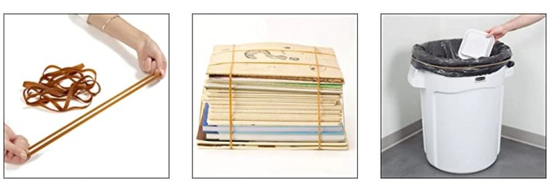 Большие резинки: можно использовать для расслоения офисных принадлежностей, мусорных банок, папок, мебели, рукоделия в повседневной жизни.