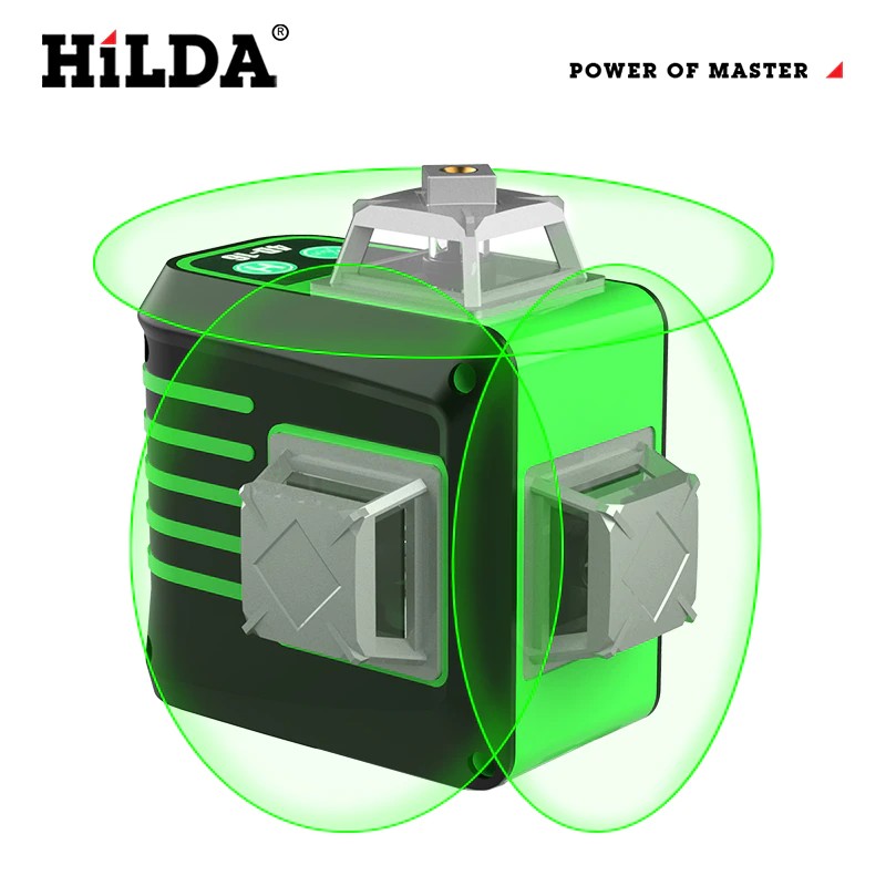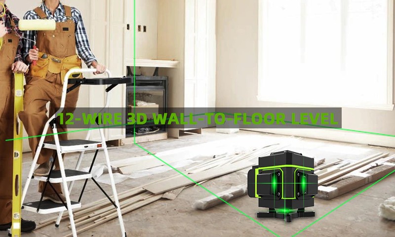 Лазерный уровень, 12 линий, 3D самонивелирующийся на 360 градусов горизонтальный и вертикальный крест, сверхмощный зеленый лазерный луч