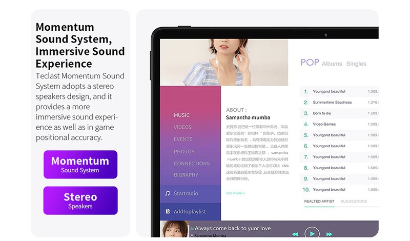 Звуковая система Teclast Momentum имеет дизайн стереодинамиков и обеспечивает болееА также в точности позиционирования игры.