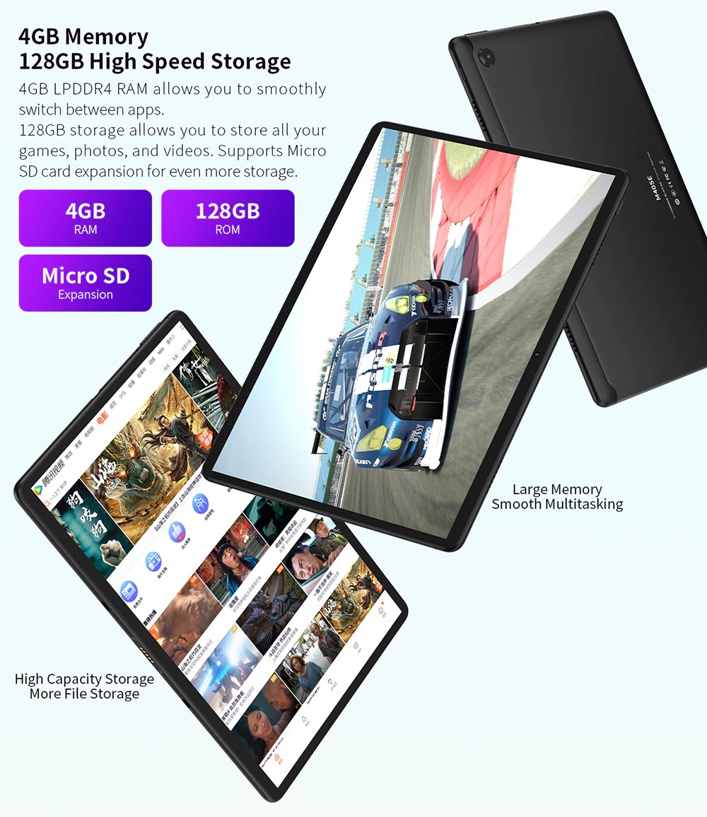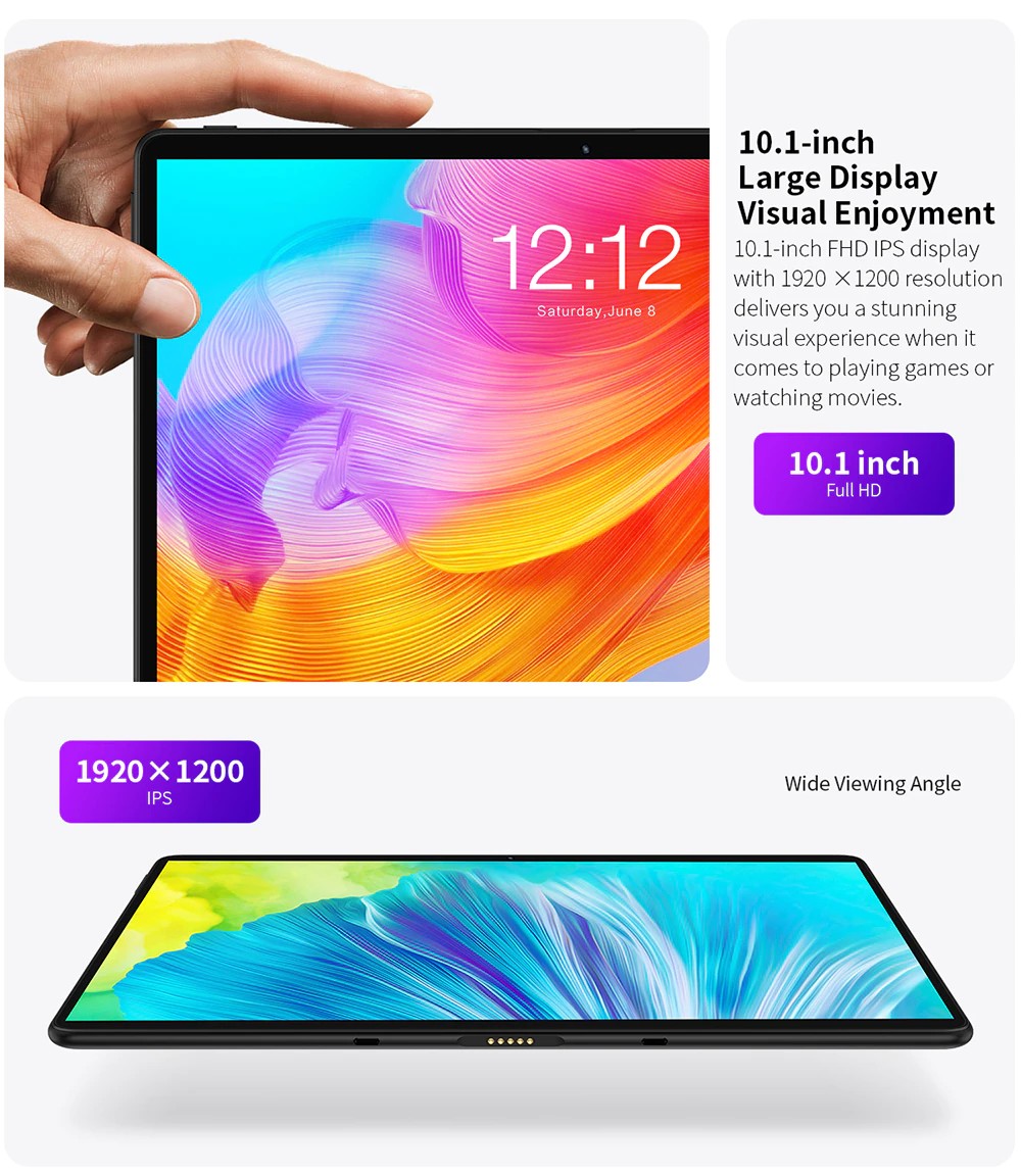 10,1-дюймовый FHD IPS дисплей с 1920 × 1200 разрешение обеспечивает вам ошеломляющий визуальный вид в тех случаях, когда речь идет о играть в игры или смотрите фильмы.