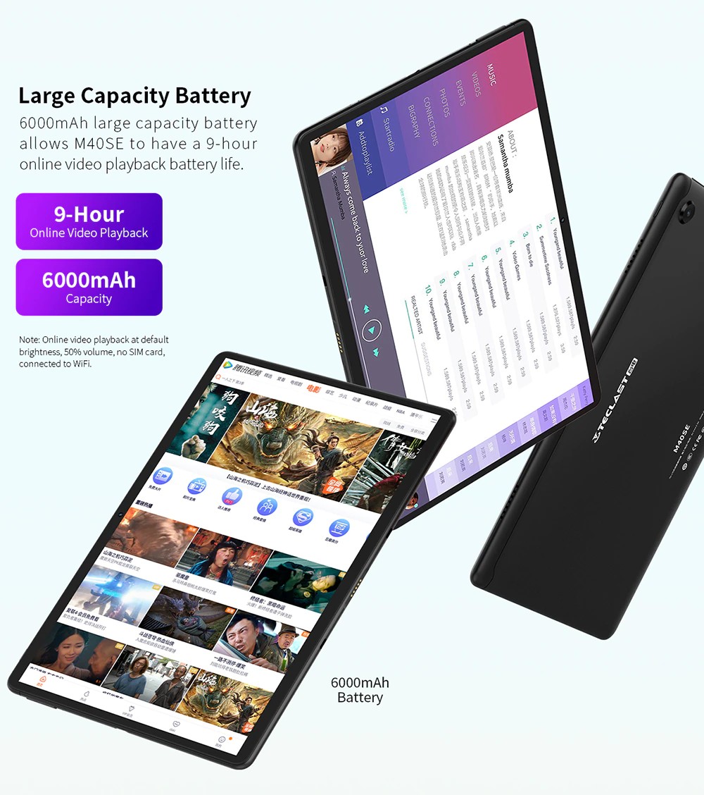 6000 мА/ч, большая емкость аккумулятора позволяет M40SE иметь 7-часовой онлайн видео воспроизведения Время работы от аккумулятора.