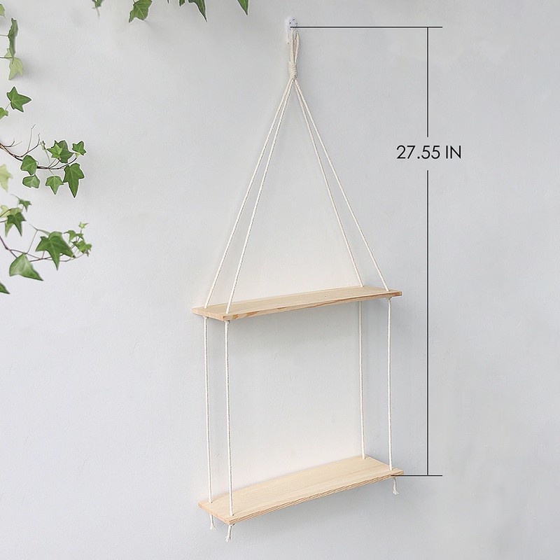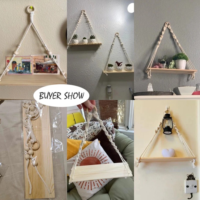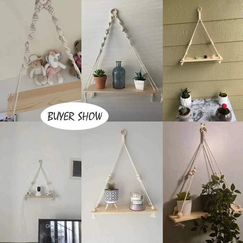 [Лучшее украшение] Эта деревянная подвесная полка является лучшим украшением в доме. Его можно повесить в различных местах дома. Его можно повесить в спальне, чтобы разместить фоторамки. В гостиной висят горшечные растения, висят в ванной, чтобы положить косметику и средства по уходу за кожей. Стильный и практичный-идеальное украшение на стене.
