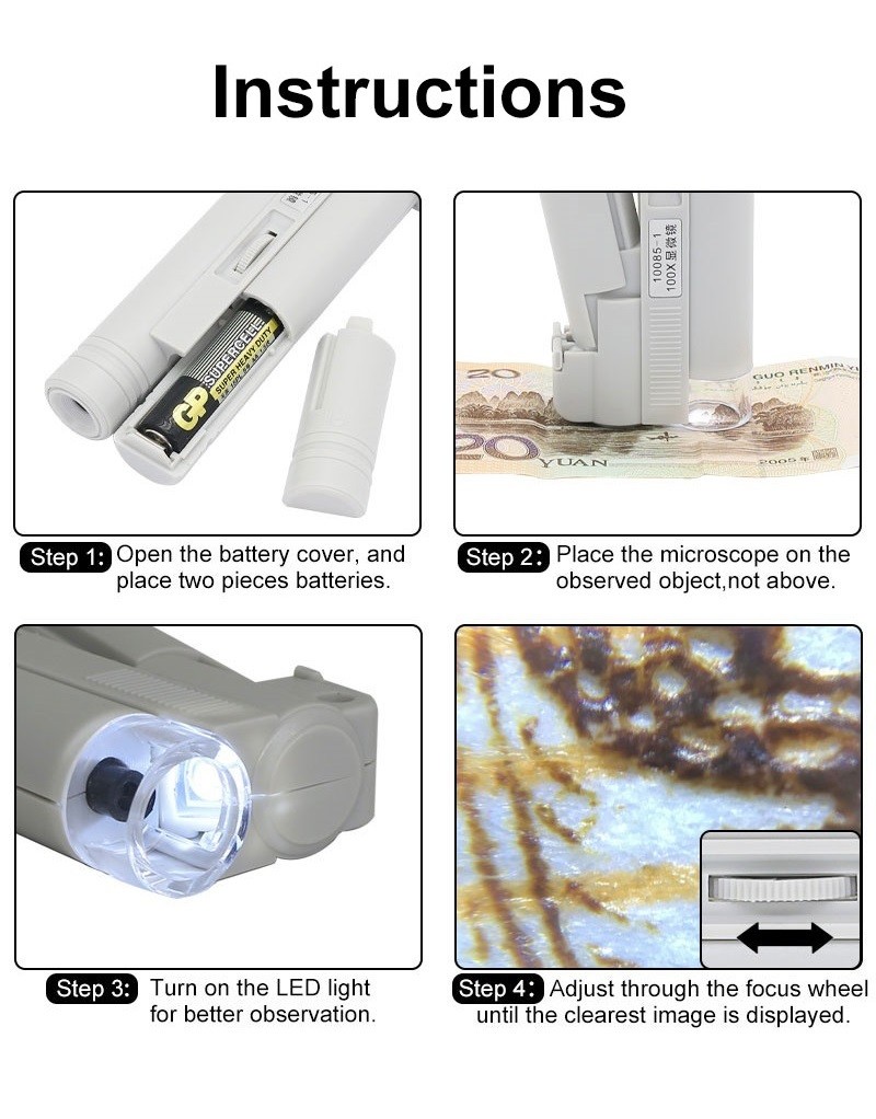 Портативный микроскоп 40X 80X 100X мини карманный портативный микроскоп светодиодный светильник складной ювелирный Лупа увеличительная Лупа