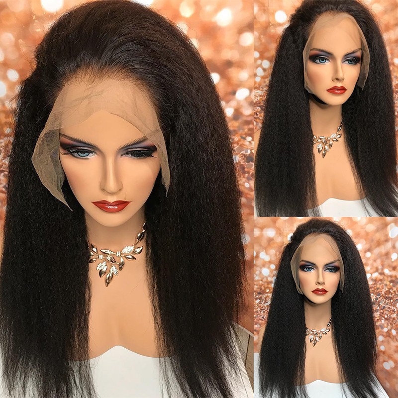 Естественная плотность 200, без клея, длинный кудрявый женский парик Yaki, натуральный черный парик из волокон для женщин