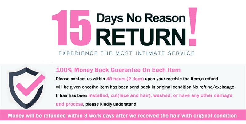 Если вам не нравятся волосы, но нет проблем с качеством, вы можете вернуть волосы в течение 7 дней, но вам нужно