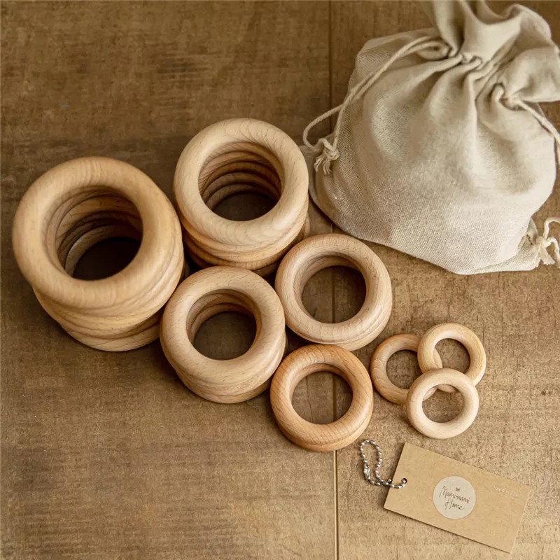 5 шт., деревянные кольца-прорезыватели для зубов, 40/55/60/65 мм