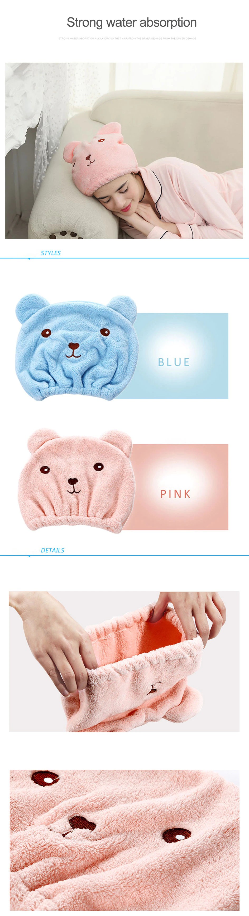 Новый Уход медведи женский тюрбан для волос быстросохнущее полотенце для ванны полотенце сушки волос головной убор шапка купания милые уши полотенце для ванной s