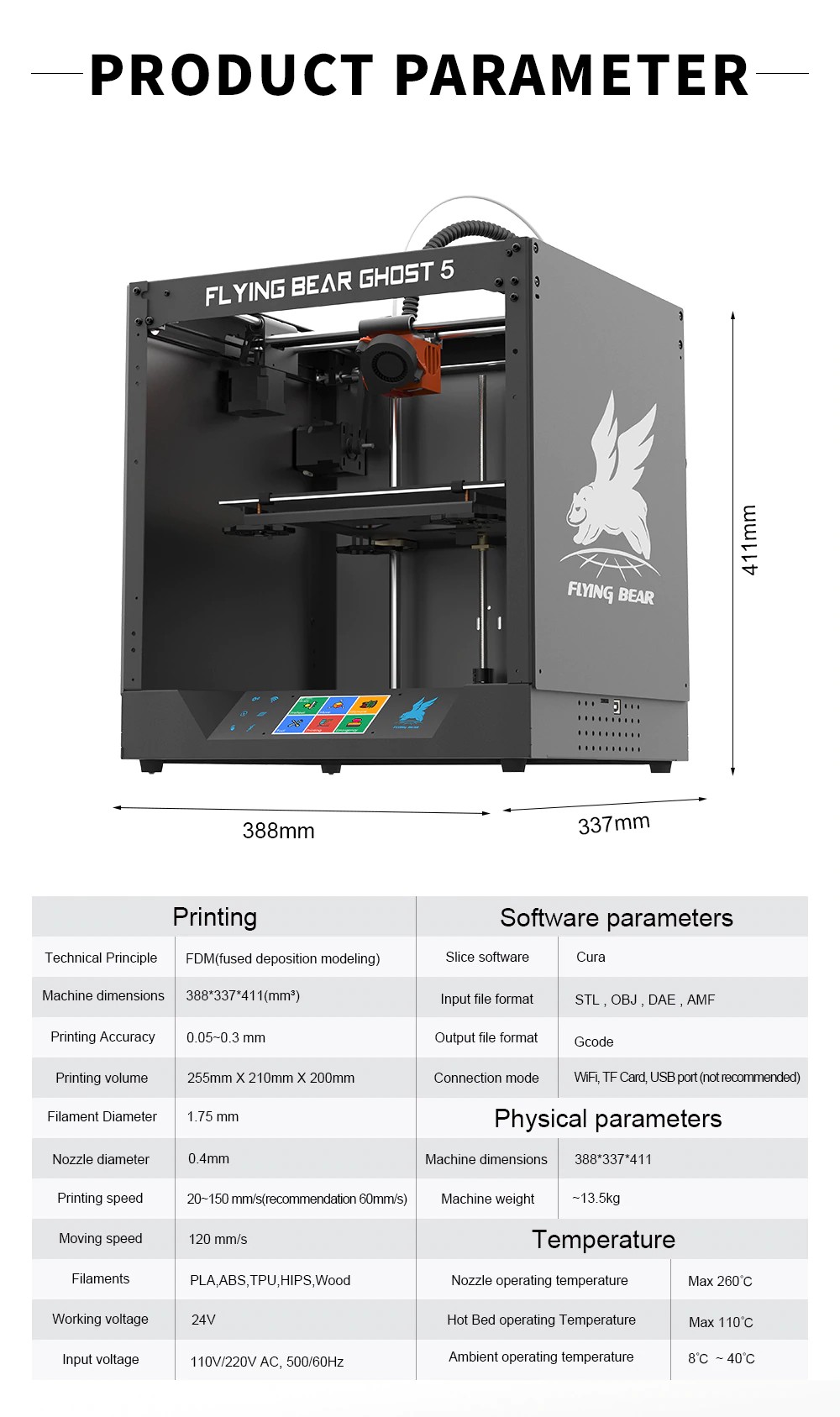 3D-принтер Flyingbear-Ghost 5, полностью металлическая рама, высокоточный со стеклянной платформой, Wi-Fi