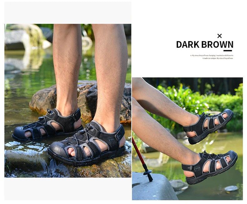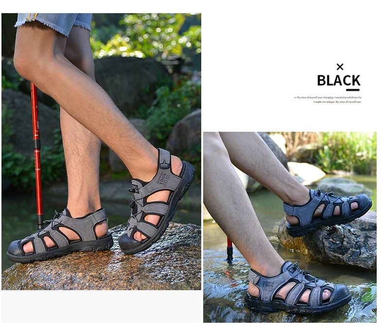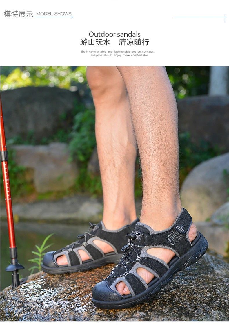 Сандалии Мужские Кожаные, Бычья Замша, Повседневная Уличная Обувь Пляжная Обувь Римские Сандалии, Лето Новейшие