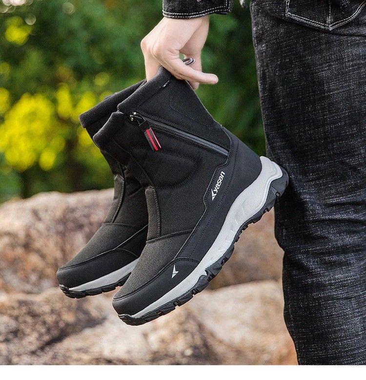 Мужские Теплые Зимние Ботинки На Молнии, Черные Уличные Повседневные Короткие Ботинки На Толстой Подошве, С Бархатной Подкладкой С Хлопковой Подкладкой, Зима Новейшие