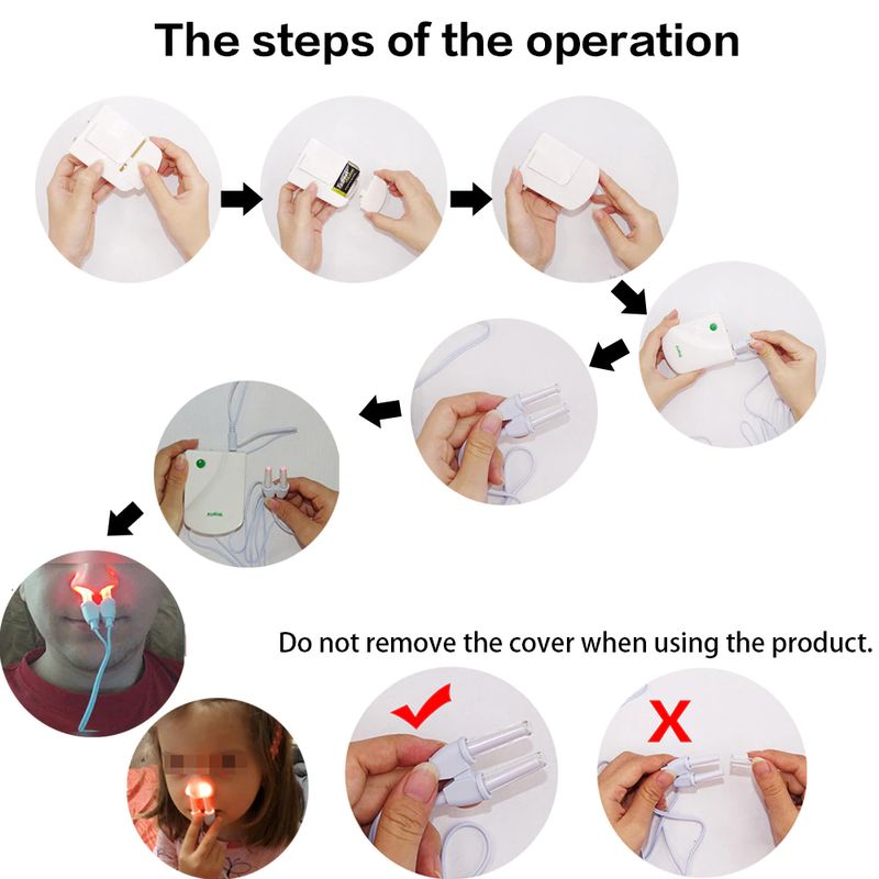 Вставьте резиновый зажим для носа в ноздри, убедитесь, что два микроисточника света Сверху входят в нос от 1 до 1,5 см.