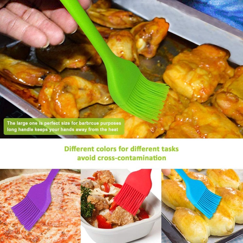 3. Многофункциональная гибкость-Вы получите 3,5-дюймовую кисть для набивки и три 3,5-дюймовых кисти для выпечки, больше не беспокойтесь о перекрестном ароматизаторе. Силиконовые кисти для выпечки способны удерживать хорошее количество жидкости и равномерно распределять. Отлично подходит для гриля, жарки, выпечки, мяса, выпечки, тортов и многого другого!