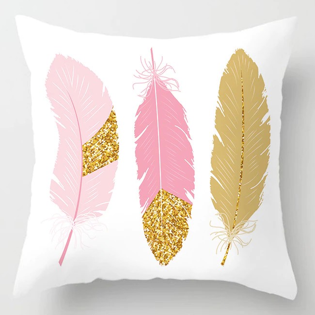 Наволочка для подушки, розовая, наволочка с изображением перьев декоративная подушка для дивана, 45x45 см