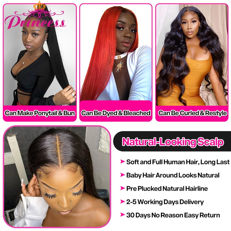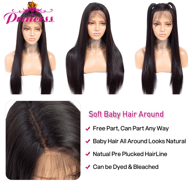 Парик принцессы 13x 4/13x 6 из человеческих волос на сетке спереди, парик с предварительно выщипанной застежкой 4x4, парик 8-34 дюйма бразильский прямой парик на сетке спереди, 180% Реми