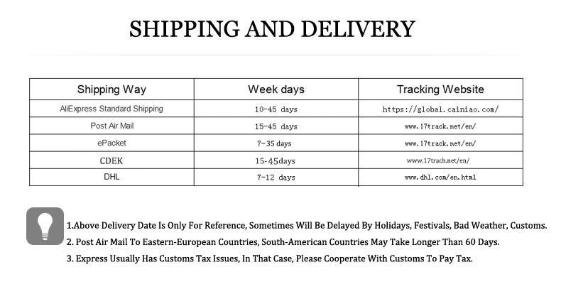 - Расчетная доставка от 5 до 9 рабочих дней.