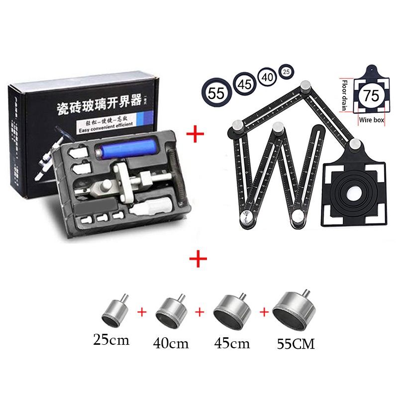 Набор 4: стеклянный резак в 1 + шестикратная линейка из алюминиевого сплава + сверло 4 шт.