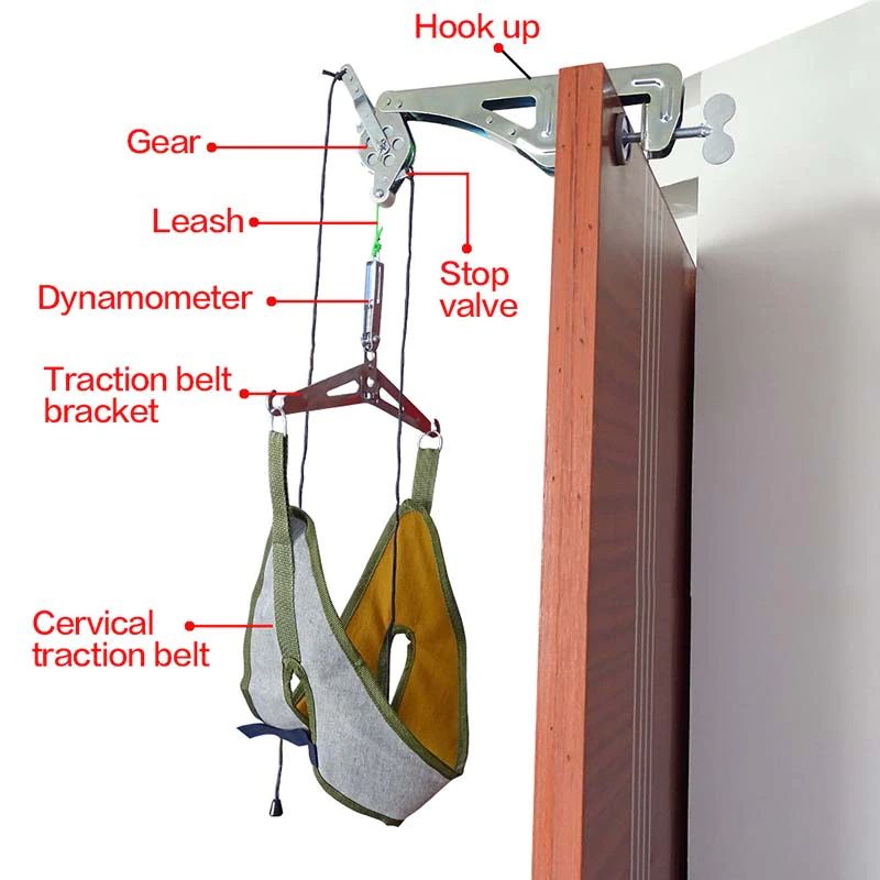 Этот комплект тяги используется для снятия давления на мышцы, нервы ткани и незначительные переломы шейного отдела позвоночника. Легко устанавливается для домашнего использования.