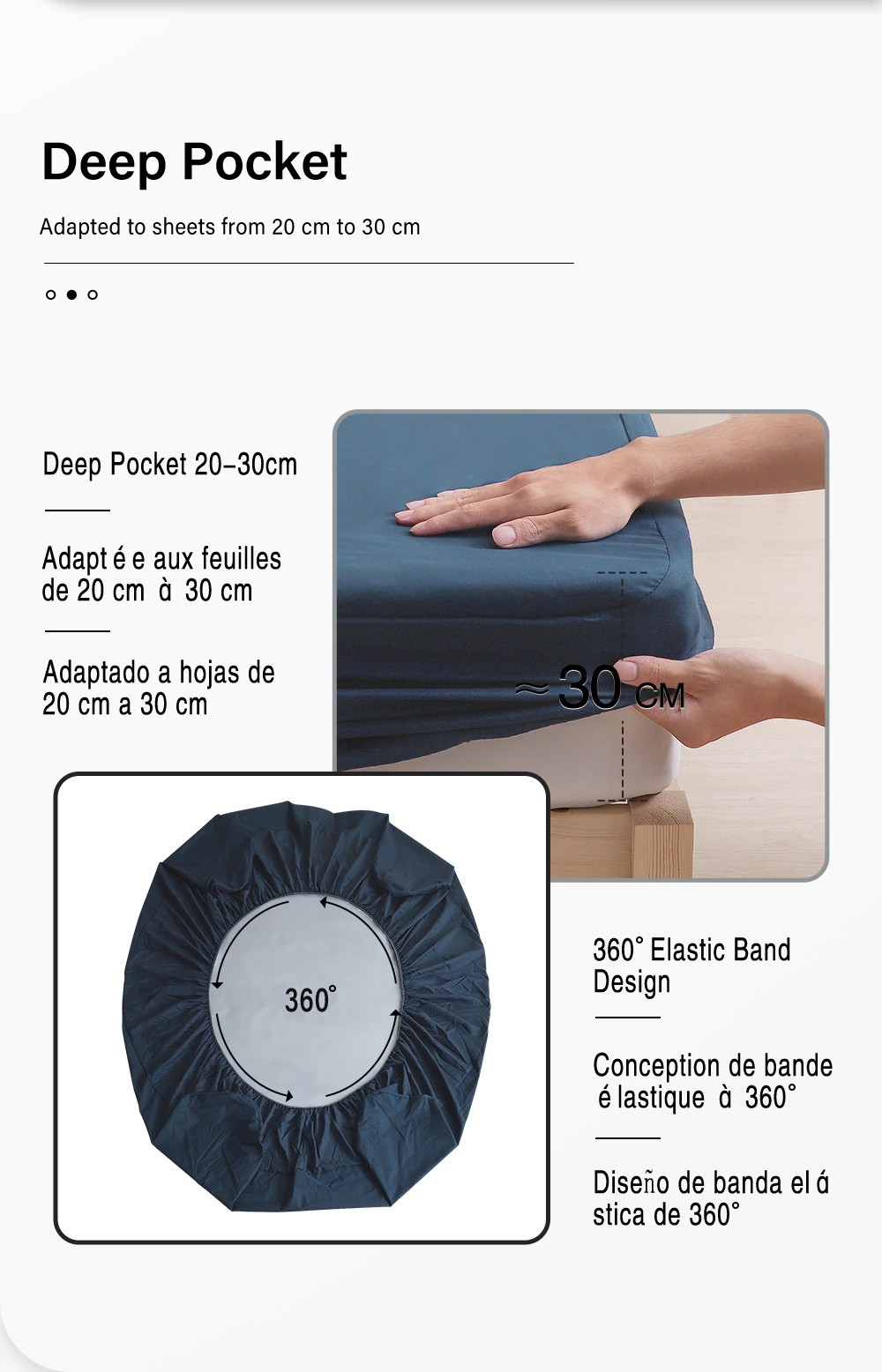 3. Элегантный пошив и глубокие карманы. Эластичная лента 360 °, подходит для матрасов толщиной от 20 см до 30 см. Обеспечивает идеальную посадку и не соскальзывает;