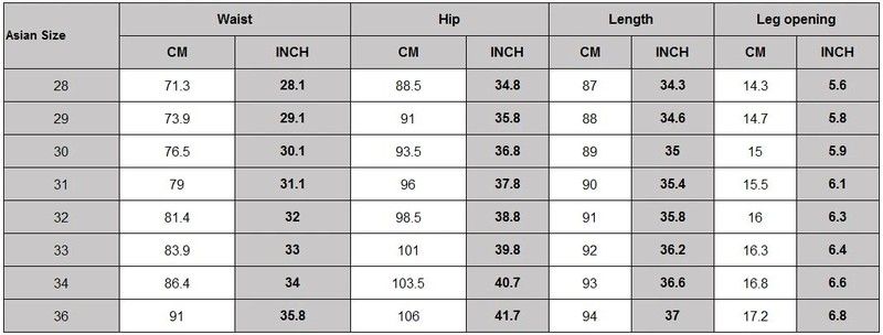 Данный товарАзиатский корейский размер, отличается от вашего, пожалуйста, дважды проверьте обхват талии брюк.
