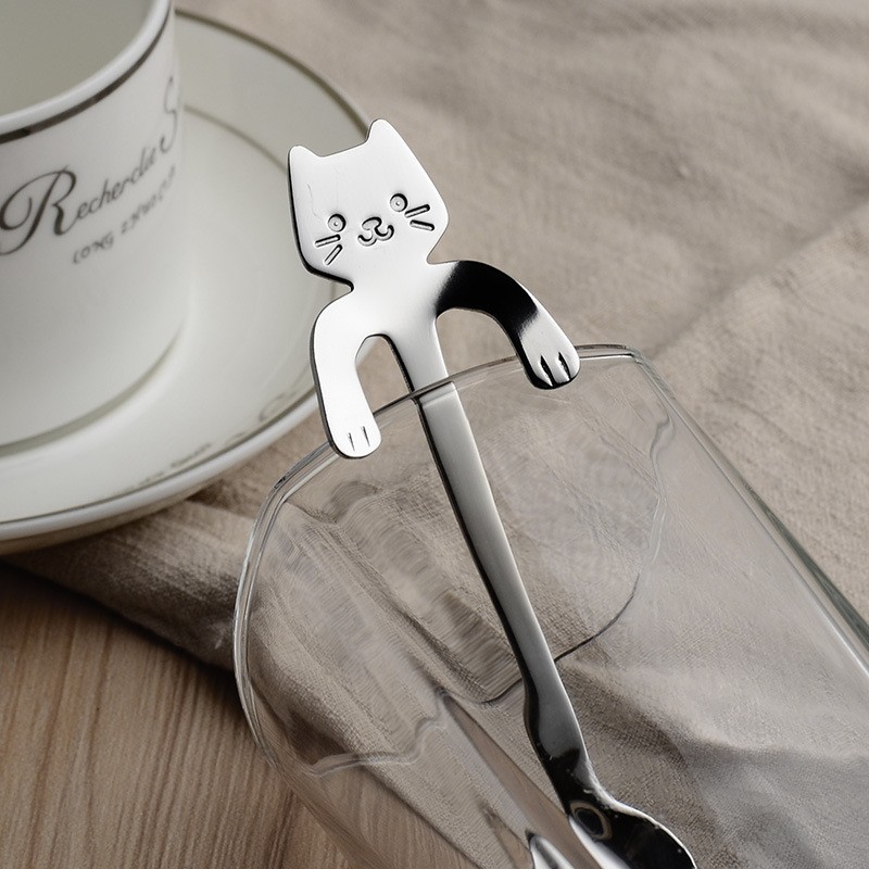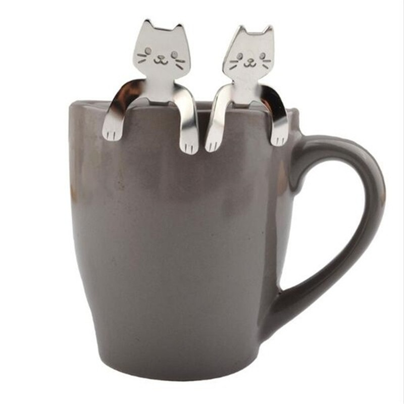 Кофейная ложка из нержавеющей стали, милая чайная ложка в форме кошки, десертная закуска совок для мороженого мини-ложки посуда, кухонные принадлежности