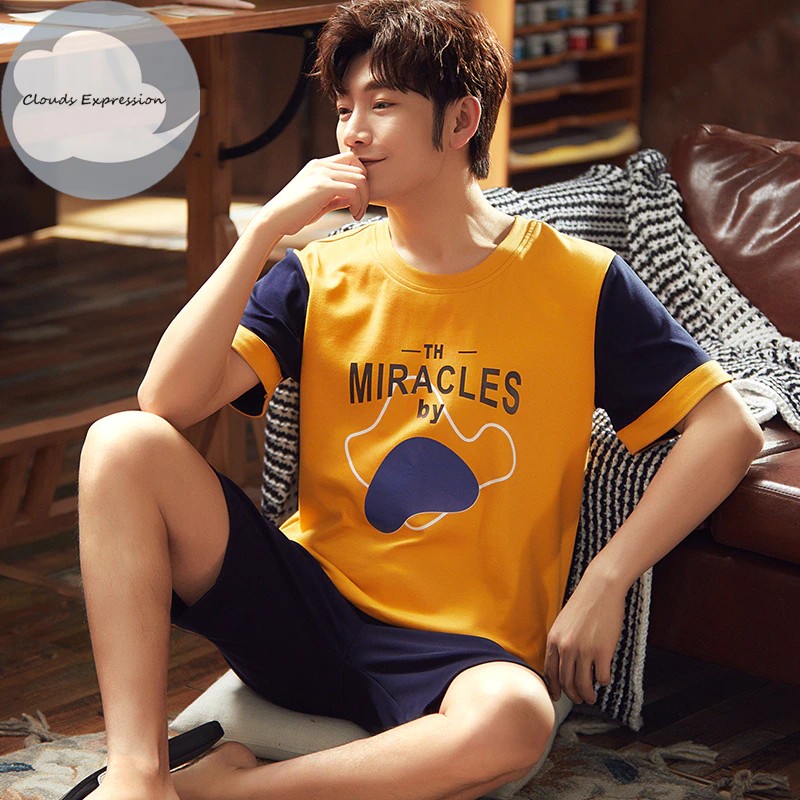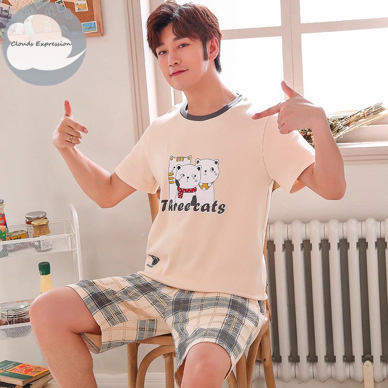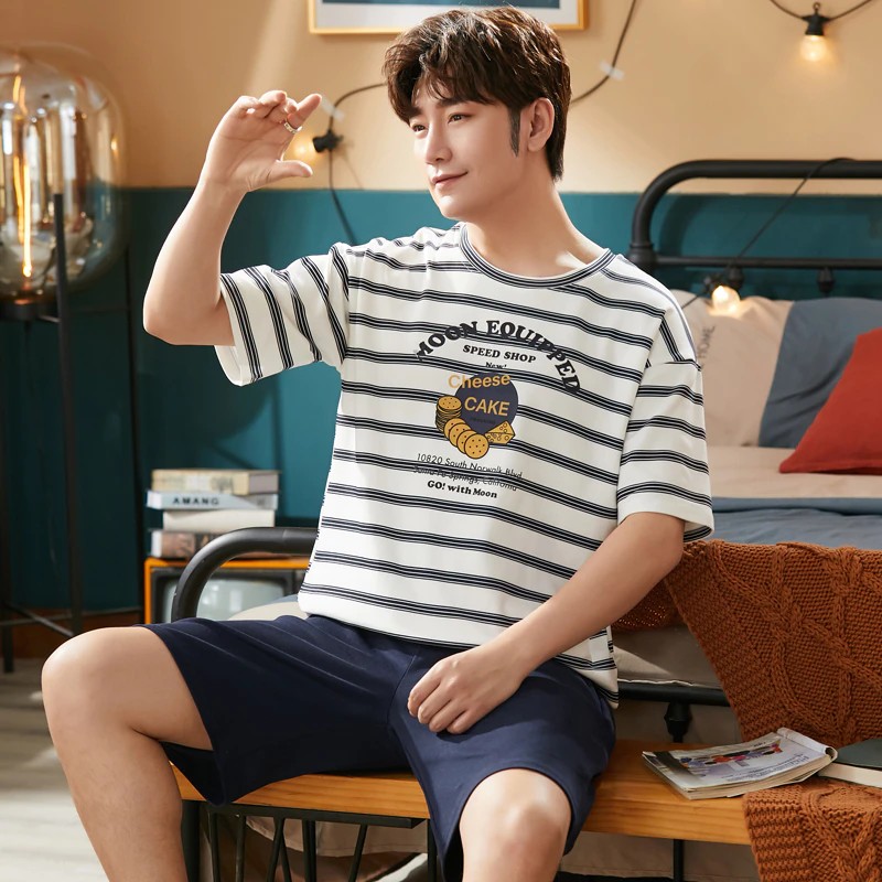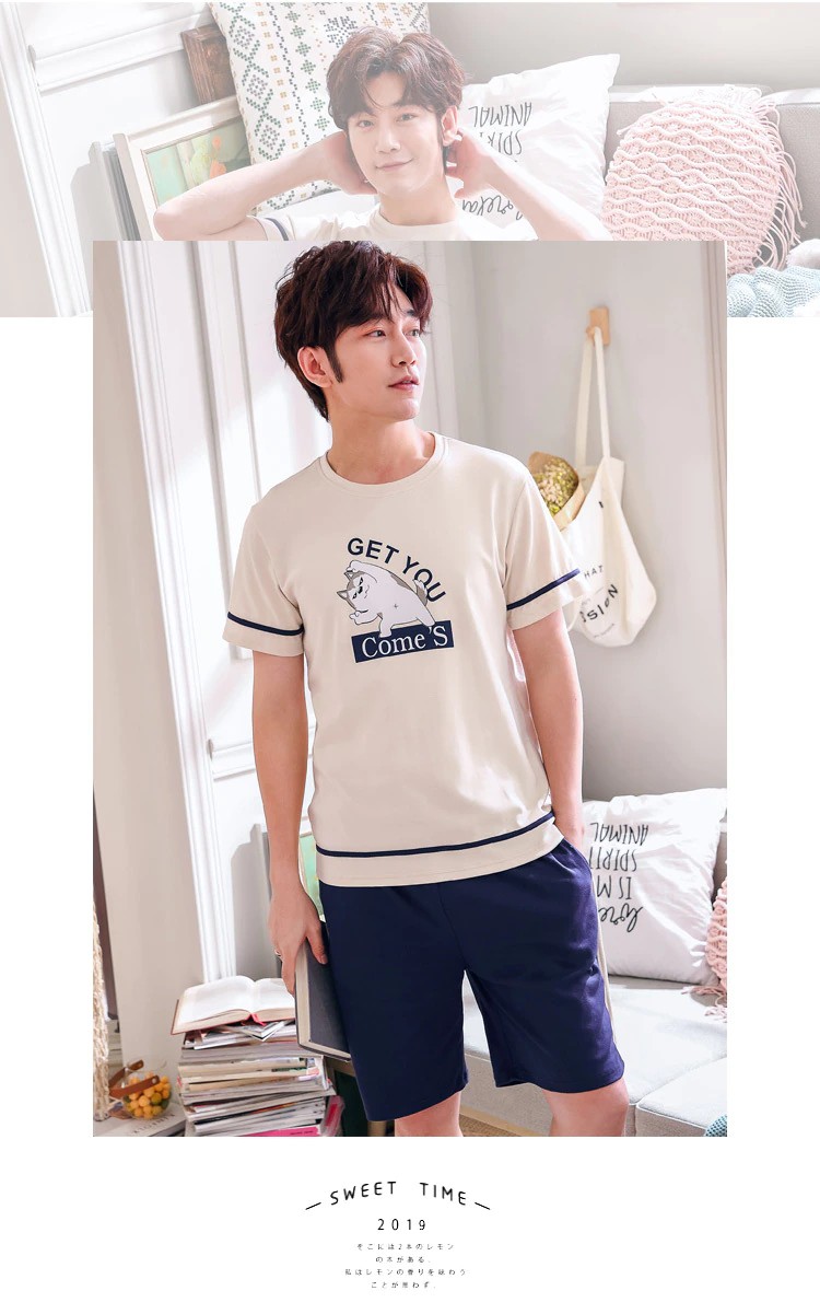 Летняя трикотажная Хлопковая мужская пижама с коротким рукавом, мужской пижамный комплект, Мужская одежда для сна домашняя одежда, размер xXXXL