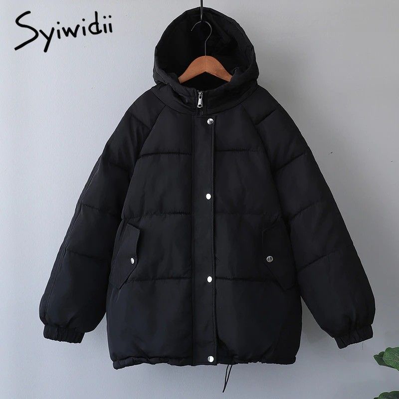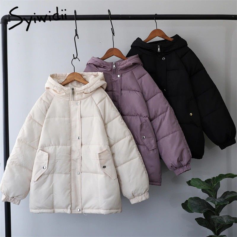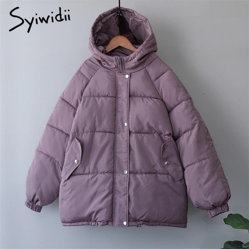 Syiwidii Женская Толстая Куртка На Осень И Зиму, Уличная Одежда, Женское Пузырьковое Пальто Черная Фиолетовая Парка Корейская Мода Новейшие, Верхняя Одежда С Капюшоном