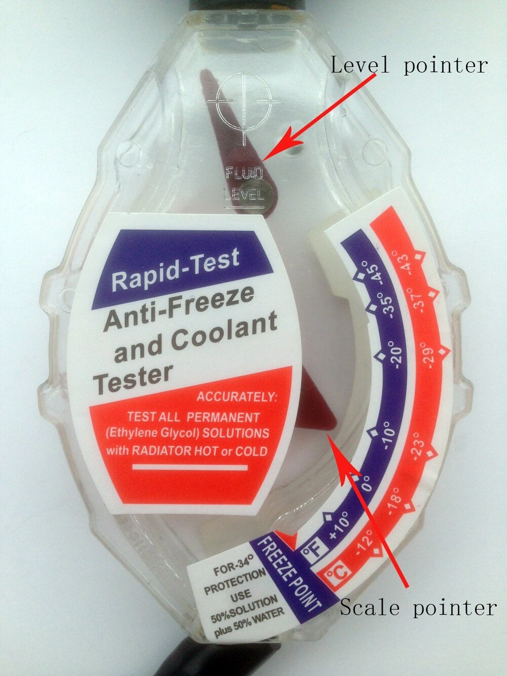Быстрая и точная шкала считывания и указателя. Калибровка в °C и °F. Измеряет температуру замерзания для зимней защиты и температуру кипения для летней защиты.