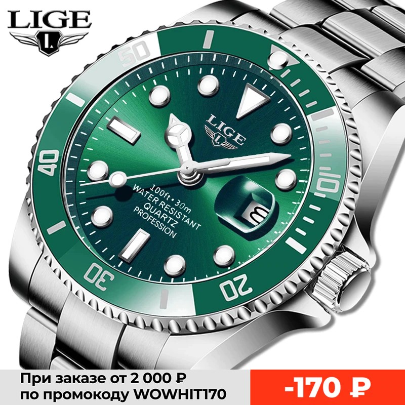 LIGE Лидирующий бренд, роскошные модные часы для дайверов, мужские водонепроницаемые часы 30ATM с датой спортивные мужские кварцевые наручные часы, Relogio Masculino