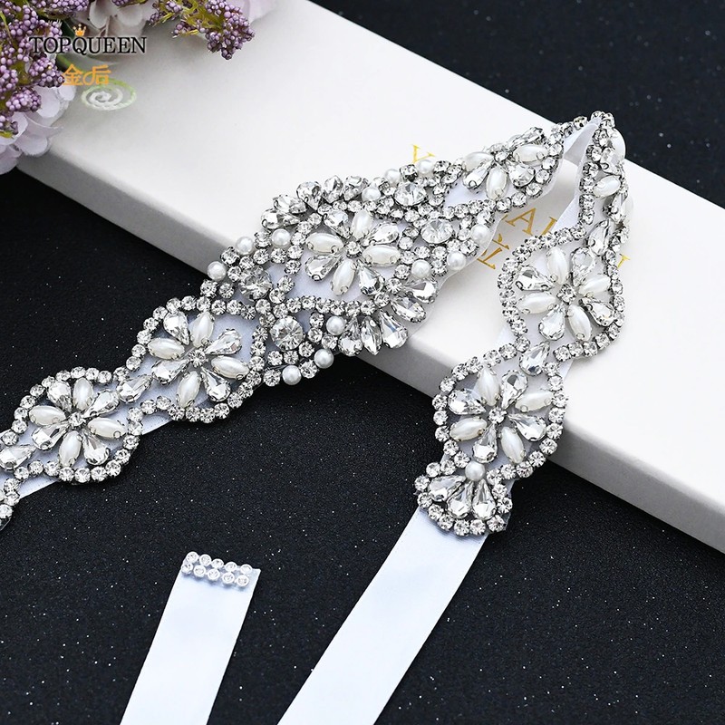TOPQUEEN S161 Свадебные ремни блестящие свадебные женские ювелирные изделия серебряные стразы жемчужные кристаллы сверкающие вечерние платья бриллиантовый пояс