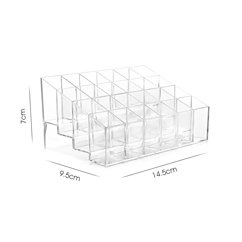 Прозрачный акриловый Органайзер для макияжа, 24 ячейки, держатель для помады демонстрационная стойка чехол косметический Органайзер лака ногтей, инструмент для макияжа #059