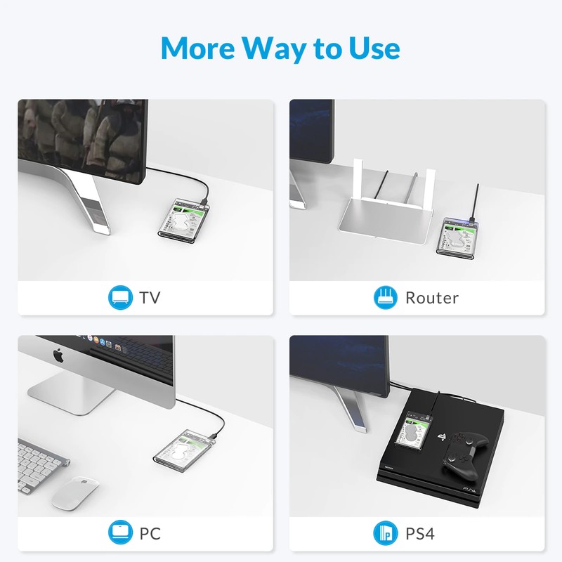 * Легко подключайте старый жесткий диск 2,5 дюйма SATA I/II/III для передачи файлов с одного ПК на другой ПК, ноутбук, PS4 или в качестве внешнего жесткого диска USB.