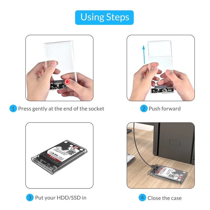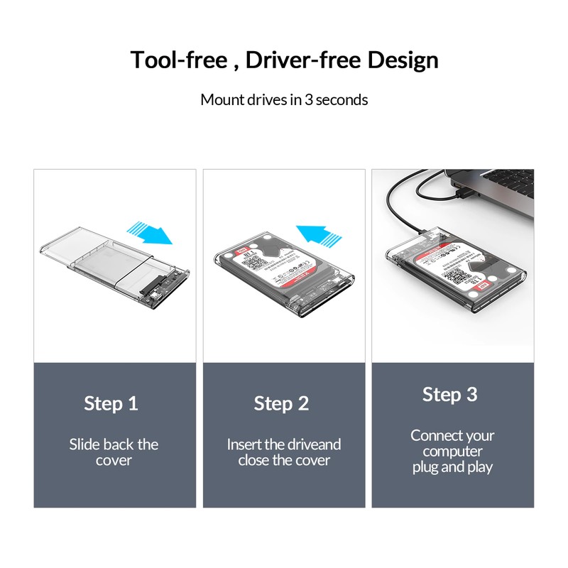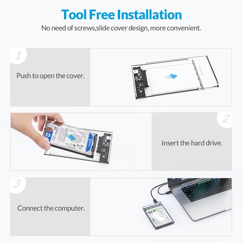 * Это высококачественный прозрачный корпус SSD / HDD, разработанный и изготовленный ORICO. Вы можете увидеть внутреннюю структуру и состояние жесткого диска с первого взгляда.