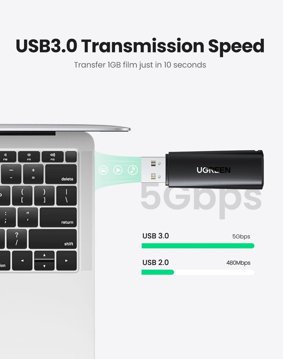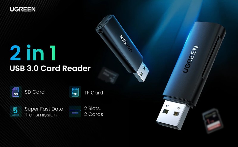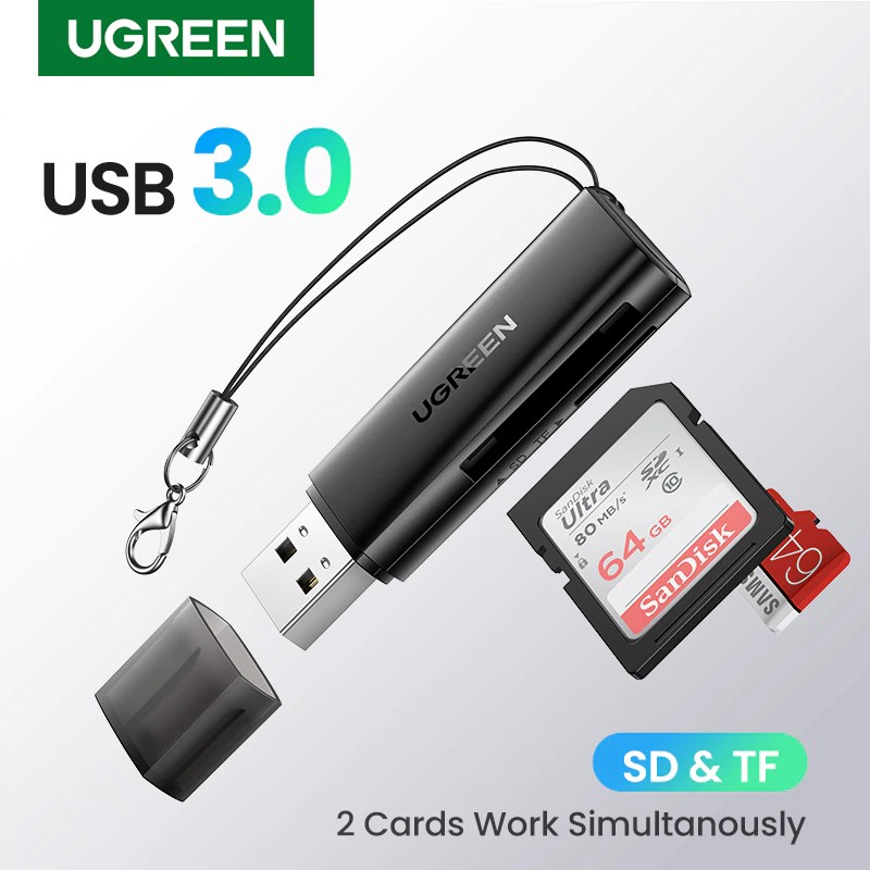 Кардридер UGREEN USB3.0 2-в-1, кардридер SD Micro SD для компьютера, ПК, адаптер для смарт-карт памяти Устройство для чтения карт SD TF