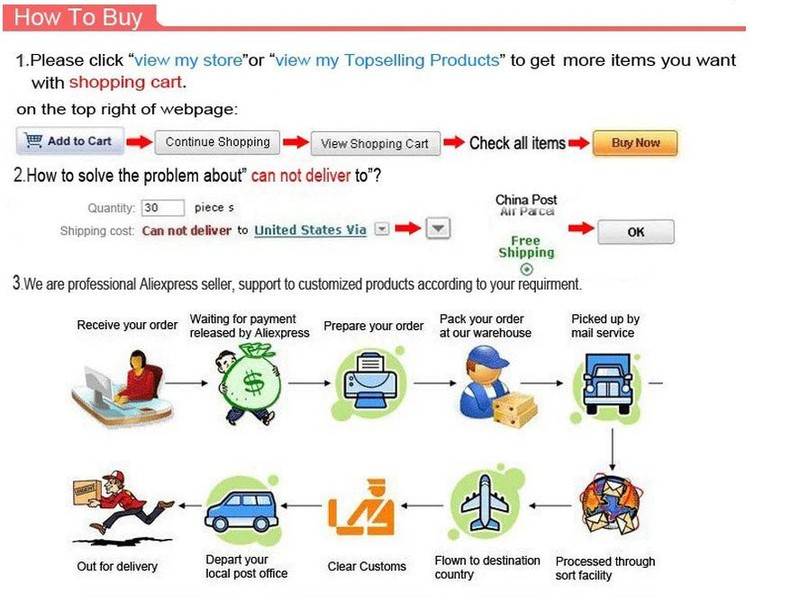 2. Большинство стран могут получить посылку в течение 15 ~ 35 рабочих дней. Доставка осуществляется заказным почтовым отправлением Китая или Авиапочтой Гонконга или e-Packet.