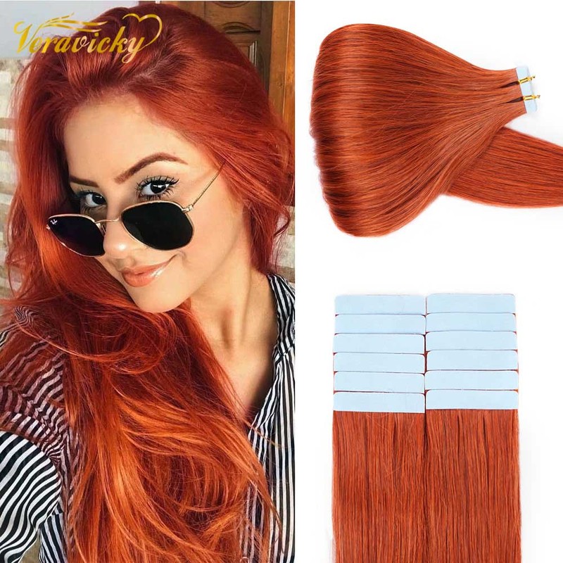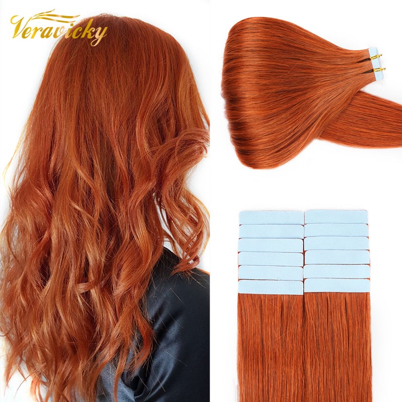 Veravicky медь красный 50 г лента в человеческих волосах удлинитель кожи уток клейкий Невидимый Machina Remy бесшовные 100% натуральные волосы