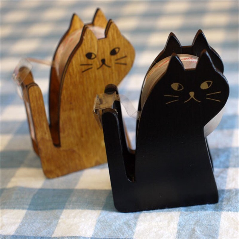 Дозатор ленты деревянной в винтажном стиле, держатель для уплотнительной ленты с милым мультяшным котом, аксессуары для офиса