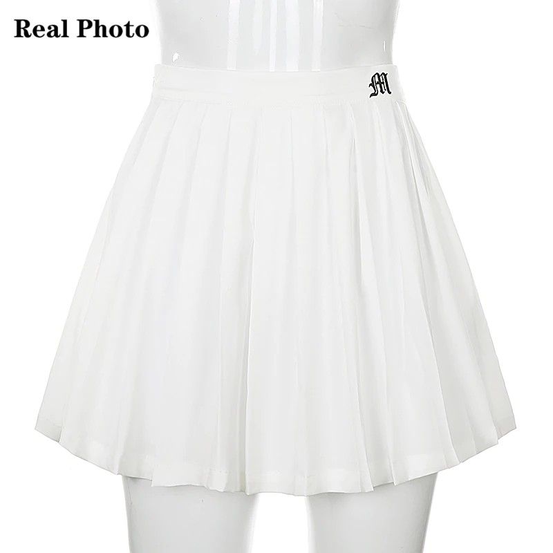 Мини-Юбка Waatfaak Женская С Эластичным Поясом, Пикантная Теннисная Мини-Юбка С Микро-Вышивкой, В Стиле Преппи Белая Короткая Юбка В Складку, На Лето