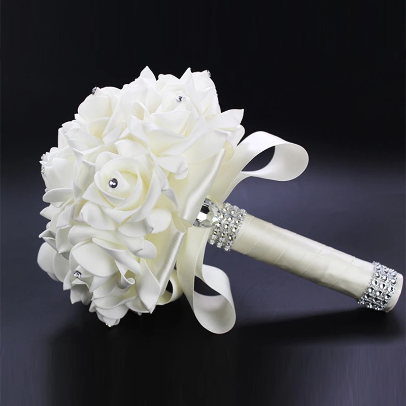 Искусственные Свадебные букеты, ручная работа, цветок розы со стразами Свадебный букет невесты, свадебные аксессуары