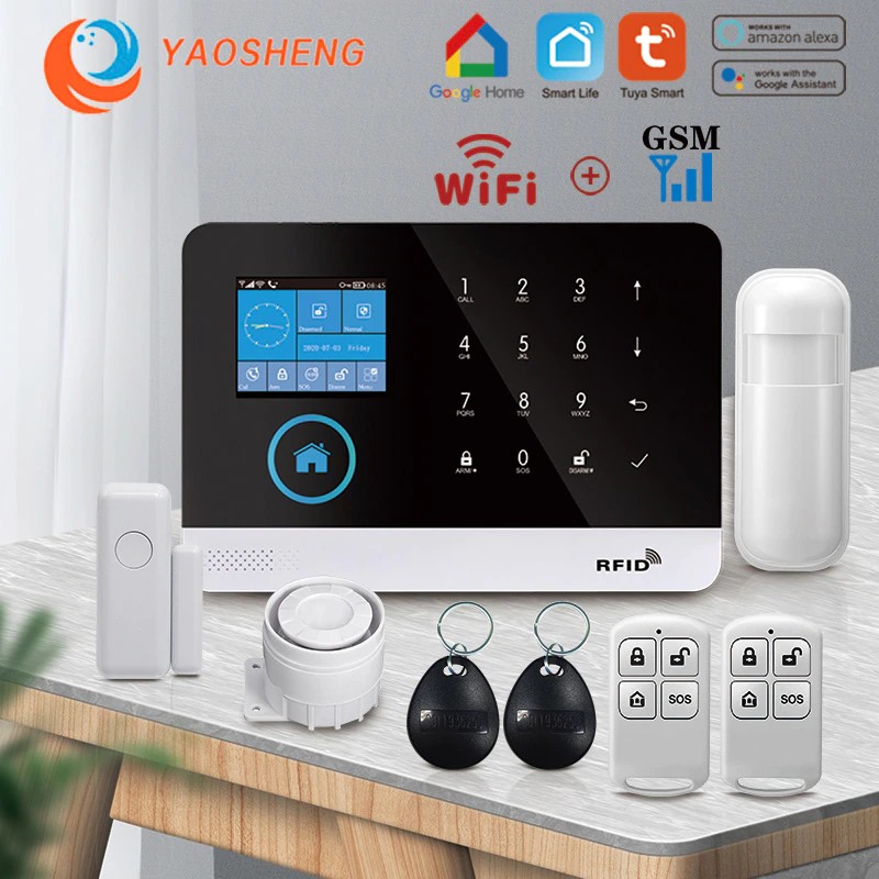 Беспроводная WIFI GSM домашняя охранная сигнализация для Tuya Smart Life APP с датчиком движения совместима с Alexa и Google