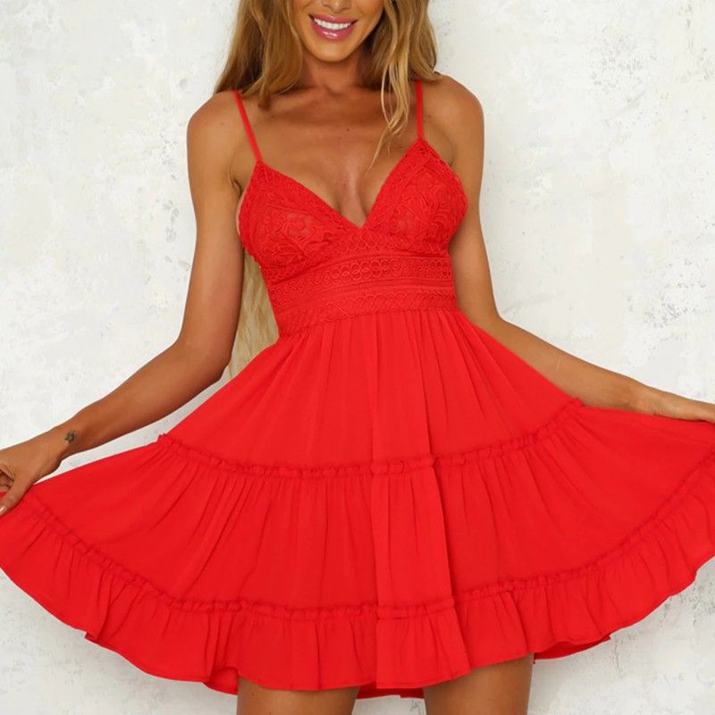 Платье Женское Кружевное В Стиле Бохо, Пикантный Пляжный Бандажный Вечерний Мини Сарафан На Бретелях С V-Образным Вырезом, С Открытой Спиной Вечерние С Оборками Белый, На Лето