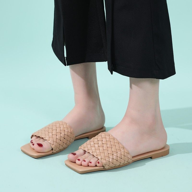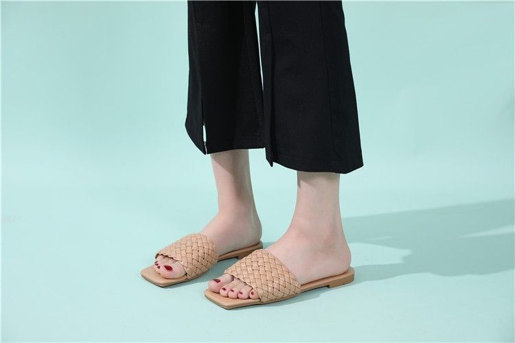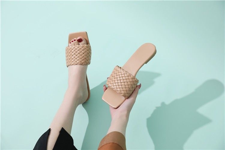 Шлепанцы Женские Плетеные, Пляжные Сандалии С Открытым Носком, Плоская Подошва Повседневные Для Отдыха, Новейшие