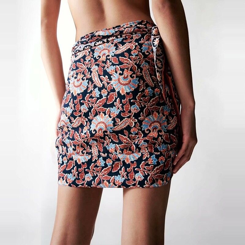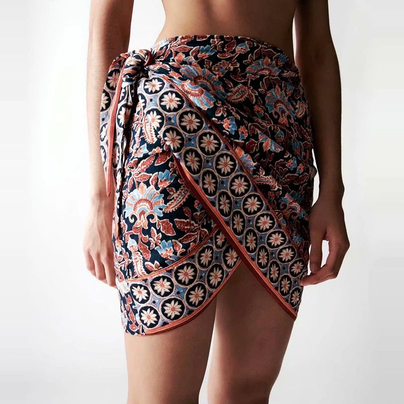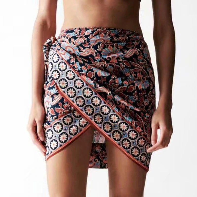 Женская Мини-Юбка Wxwt Za, Юбка В Стиле Бохо С Принтом Позиционирования, Украшенная Узлом Модель Bb1529, Новейшие