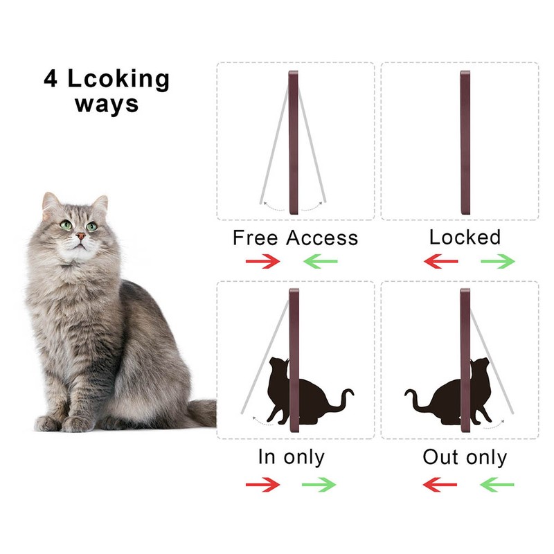 1. Let your cats enter and exit at will through the cat lick with a 4-way locking system.