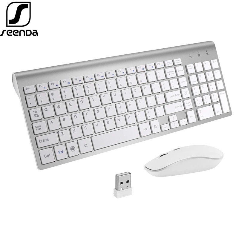 Seenda 2.4G Wireless Silent Keyboard And Mouse Mini Multimedia Full-Size Keyboard Mouse Combo Set For Notebook Laptop Desktop Pc