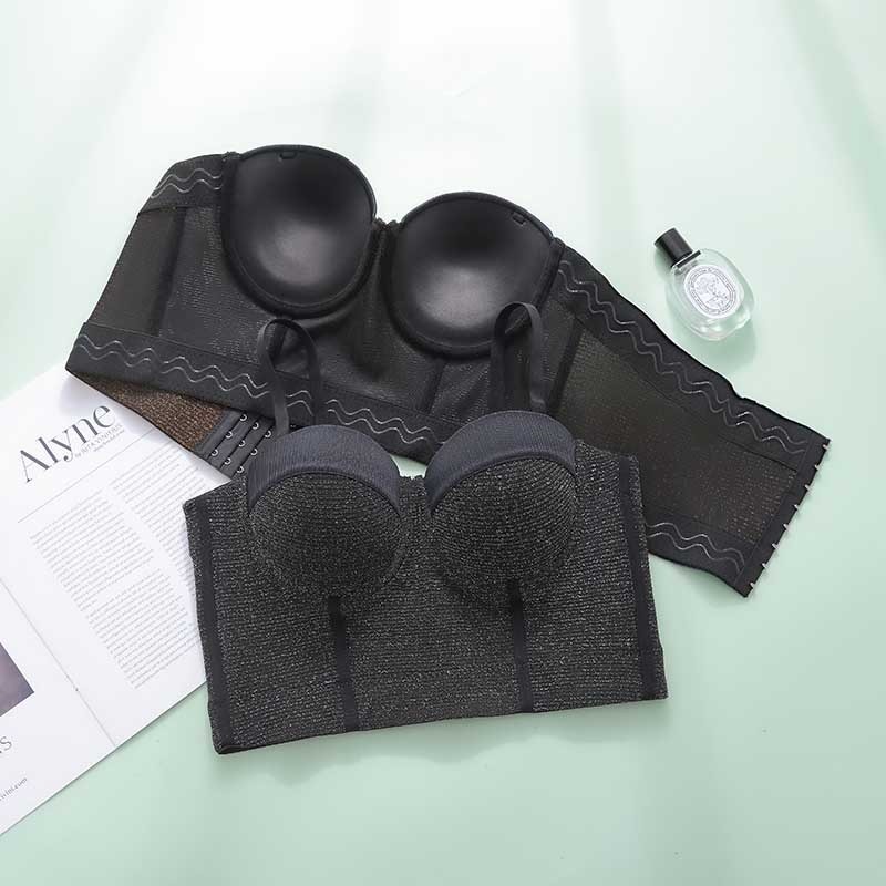 Sexy Black Transparent Bra Mesh Push Up Bralet Women'S Tube Top Corset Bra Club Party Crop Top Plus Size