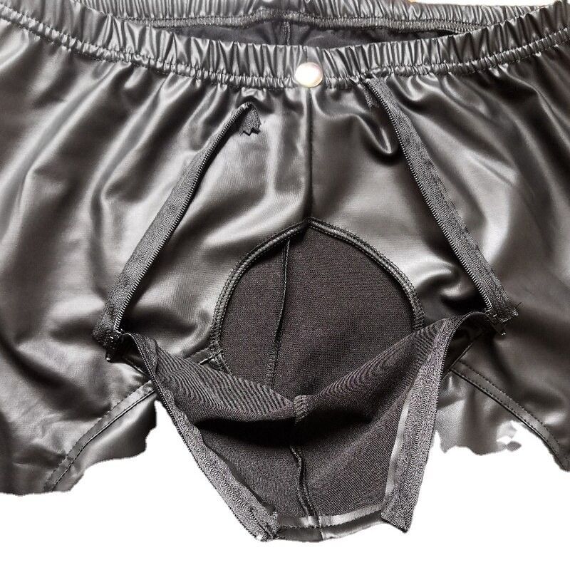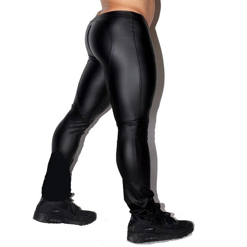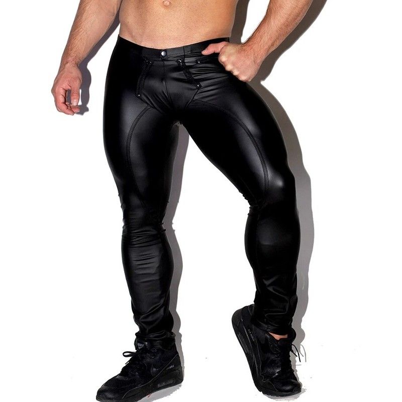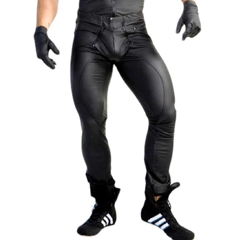 Sexy Men Faux Leather Zipper Open Crotch Erotic Latex Pants Pu Night Club Men Straps Trousers Gothic Punk Fetish Club Wear