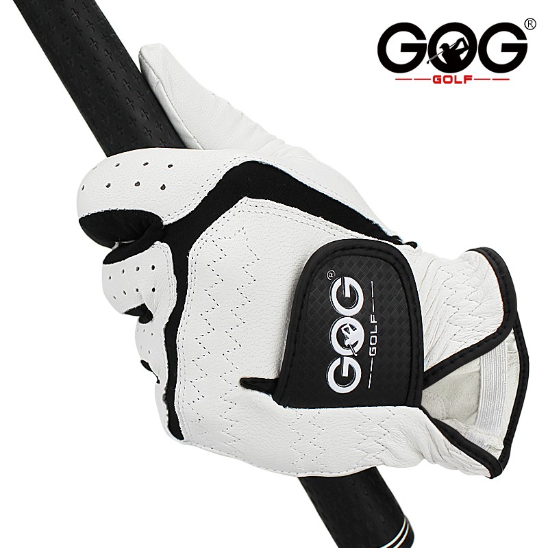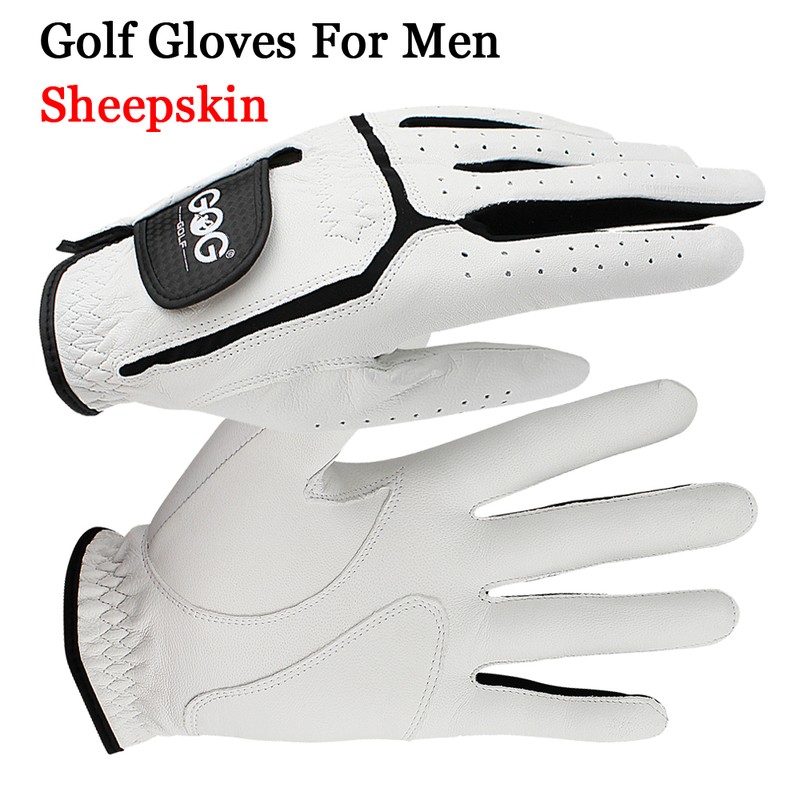 Sheepskin Genuine Leather Professional Golf Gloves For Men White And Black Lycra Gloves Palm Thickening Gift For