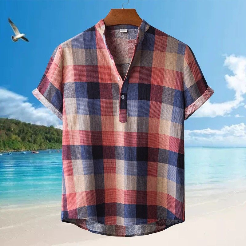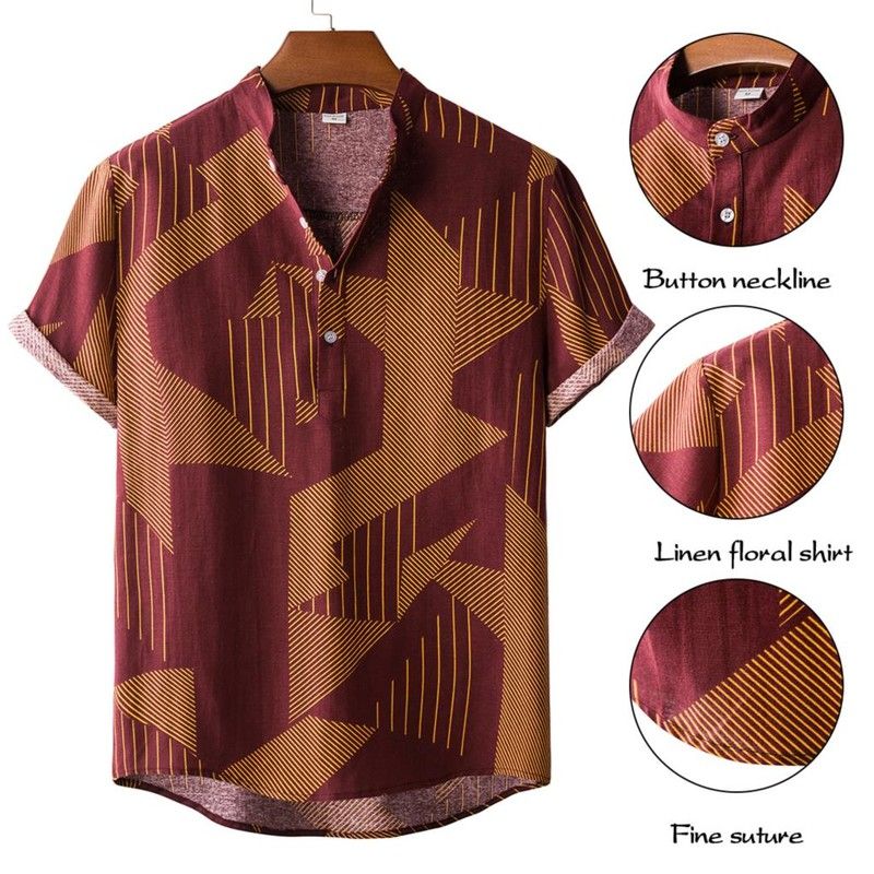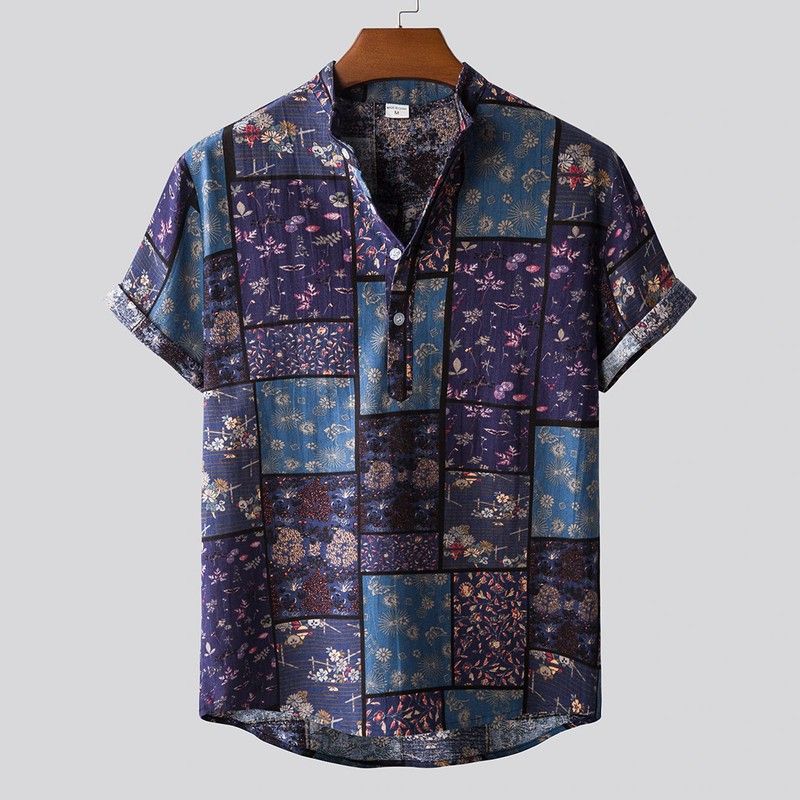 Shujin Men Linen Cotton Short Sleeve Shirt Summer Floral Loose Baggy Casual Shirts Tops Holiday Beach Men'S Hawaii Shirts