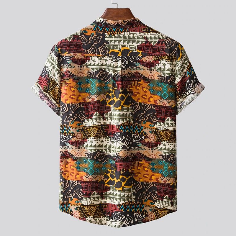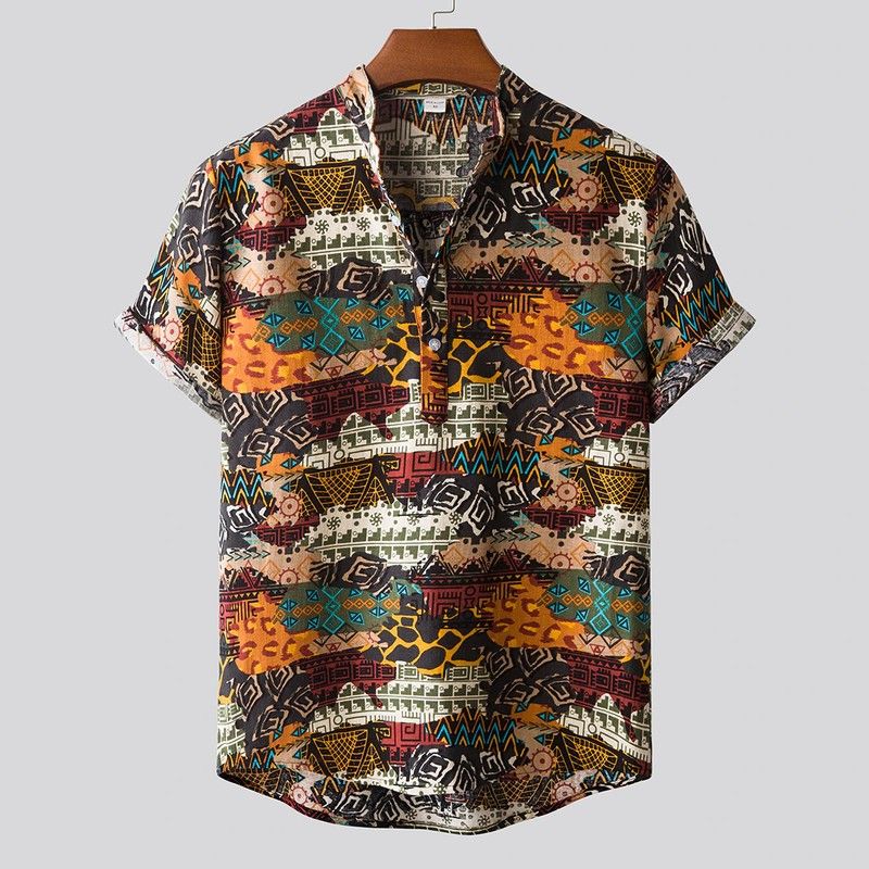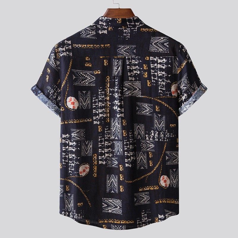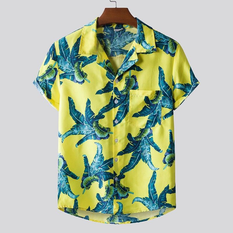 Features:Men's fashion printed Lapel short sleeve casual loose Floral Shirt